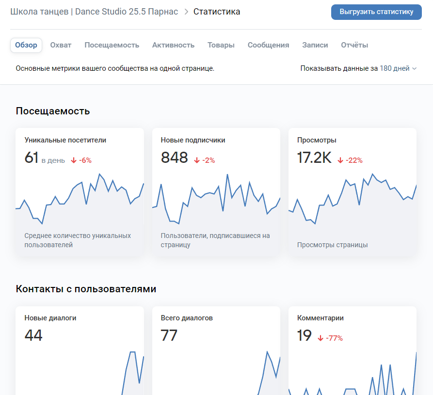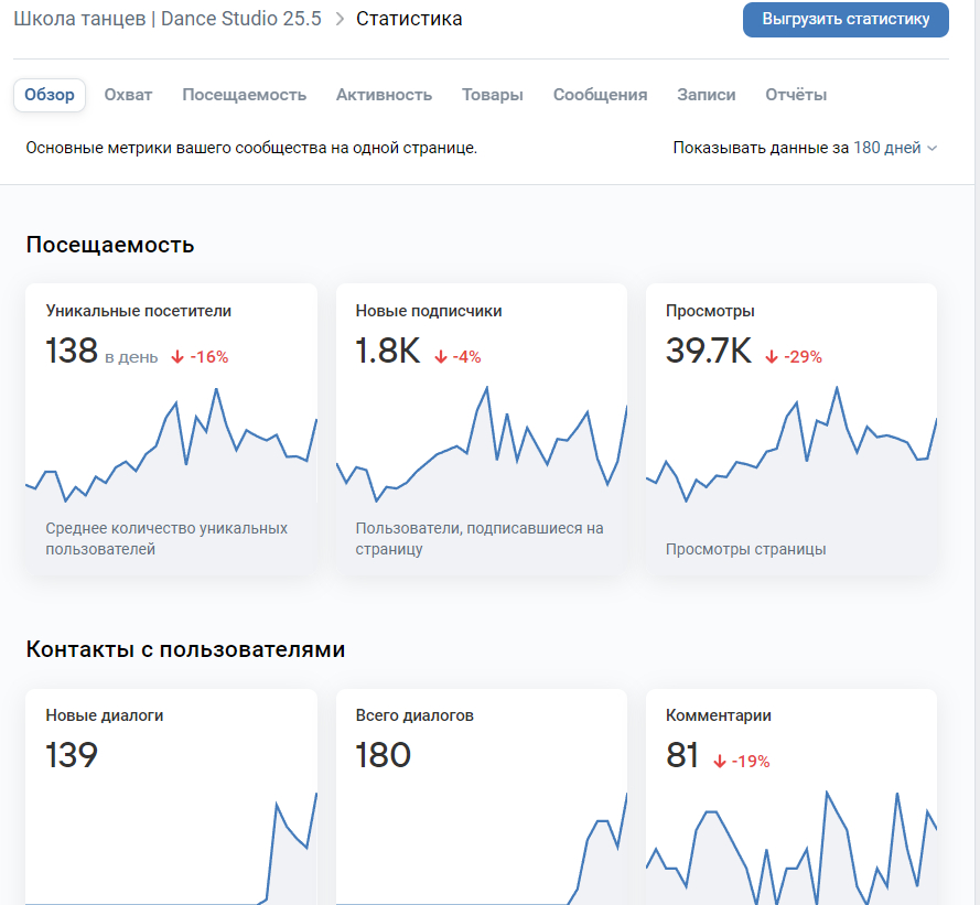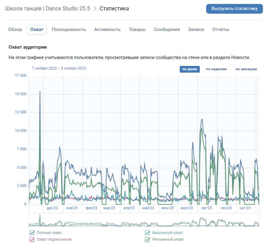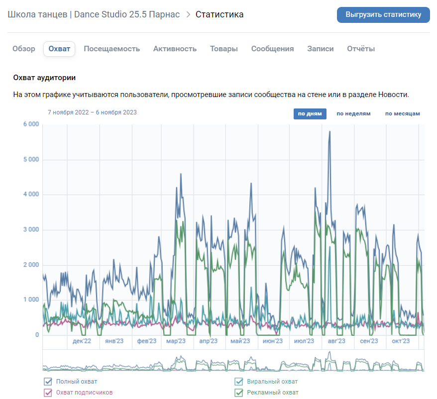 Статистика охвата в сообществе: