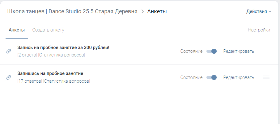 Из ресурсов, у каждого филиала было своё сообщество в ВК, контент публиковался активно, выкладывались видеоматериалы с записью танца преподавателей, фотографии с различных танцевальных мероприятий и другие посты.