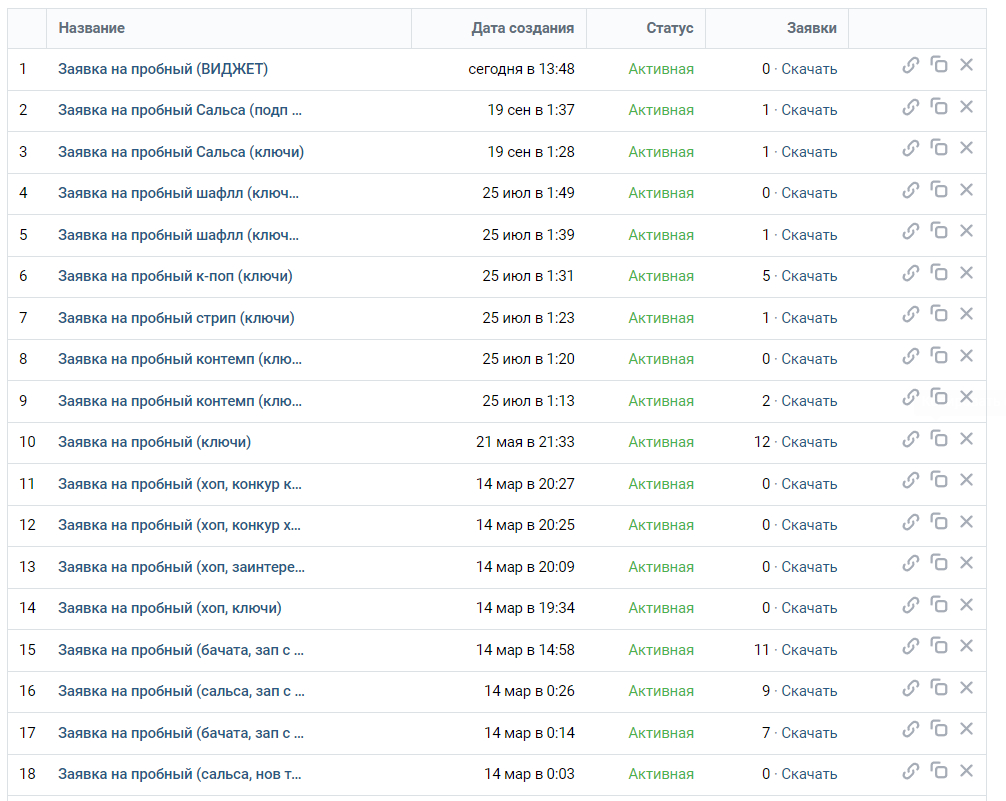 Запускали рекламные объявления как общего характера, так и отдельно на некоторые направления. Например на сальсу, бачату, reggaeton, K-pop, растяжку и др.