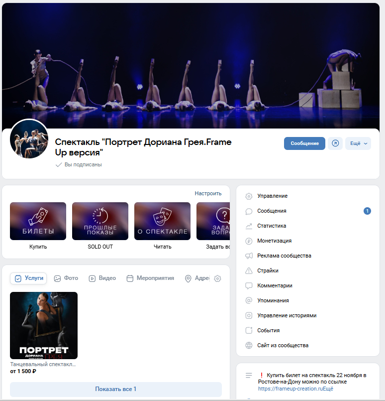 В объявлениях подробно рассказывали о спектакле: что это за мероприятие, почему стоит прийти, где и когда будет проходить. Добавляли четкую информацию о месте проведения, времени и т.д., и призываем получить видео-отрывок спектакля почувствовать атмосферу и понять, заинтересованы ли они в посещении спектакля.