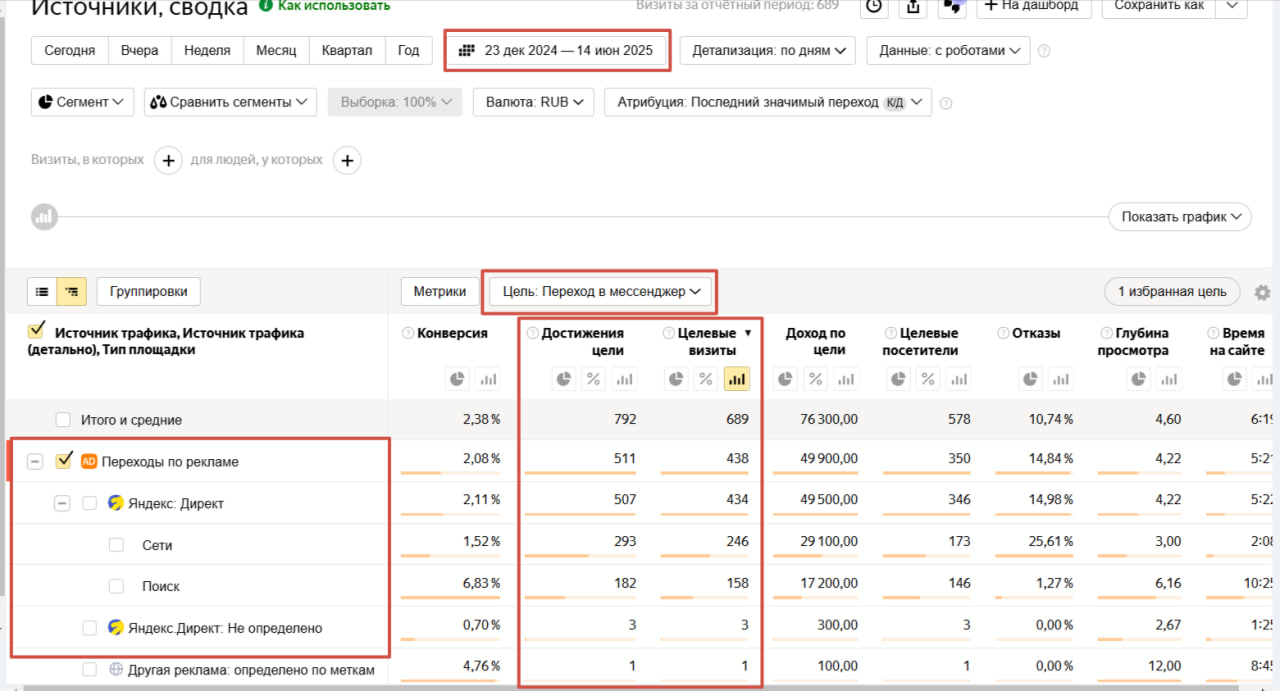 Скриншоты из Яндекс.Метрики — отчеты по источникам трафика с фильтрацией по целям 👇