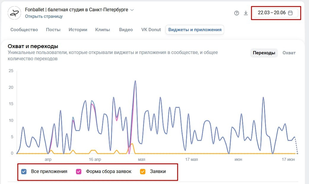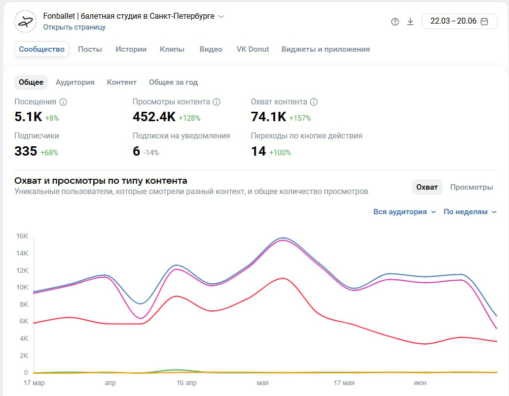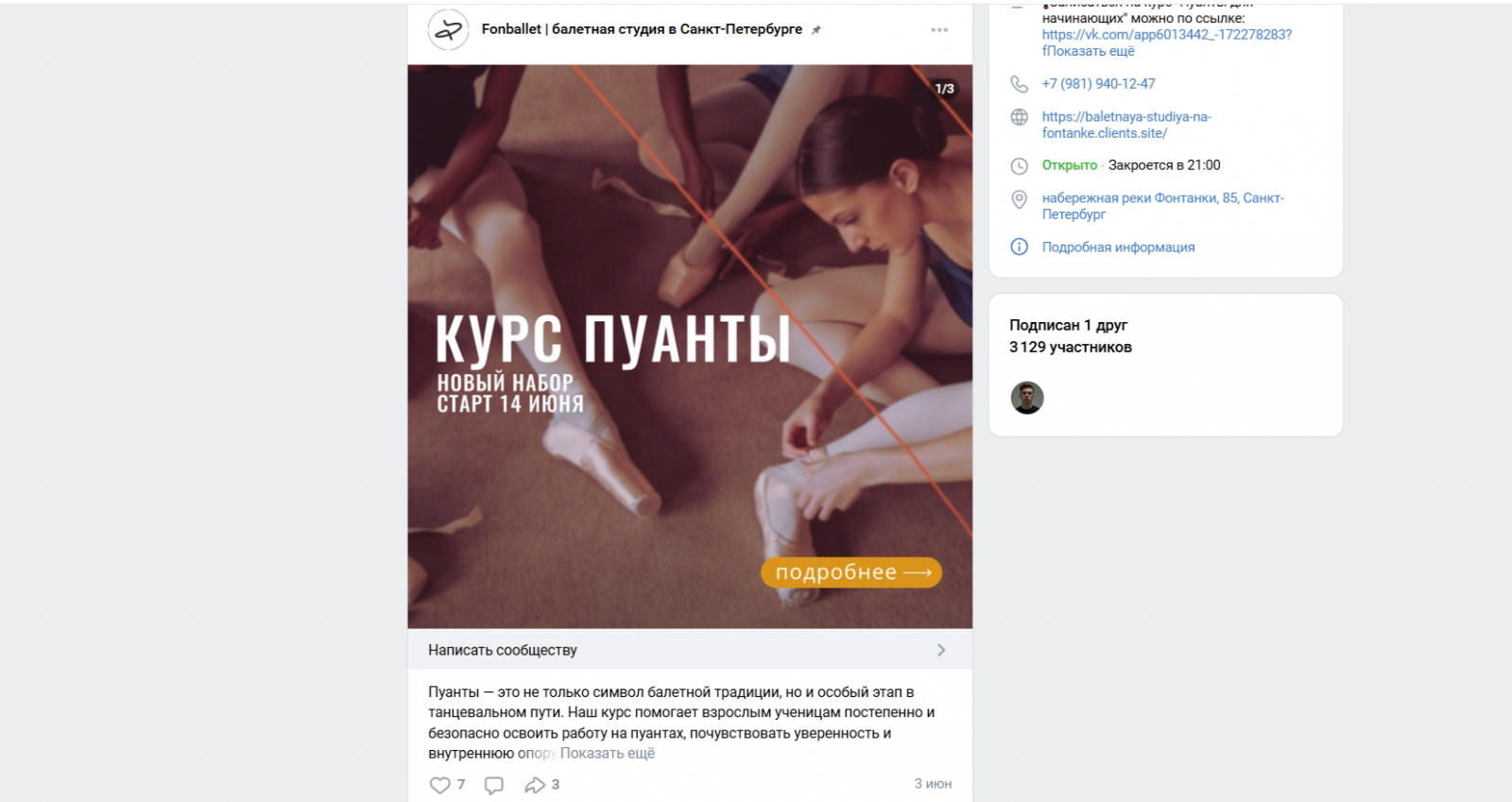 Школу балета в Санкт-Петербурге можно успешно продвигать, развивать и получать заявки, используя канал трафика ВКонтакте. Мы продолжаем активно работать над проектом и по сей день (10 августа 2025). Надеемся на длительное и взаимовыгодное сотрудничество 🙂