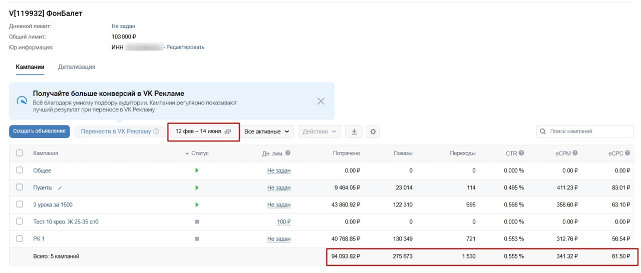 После этого мы настроили рекламу на пробный абонемент «Старт» и продолжили рекламировать новый поток курса «Новички». Мы начали выстраивать работу по двум направлениям параллельно, распределяя бюджет в зависимости от приоритетности.