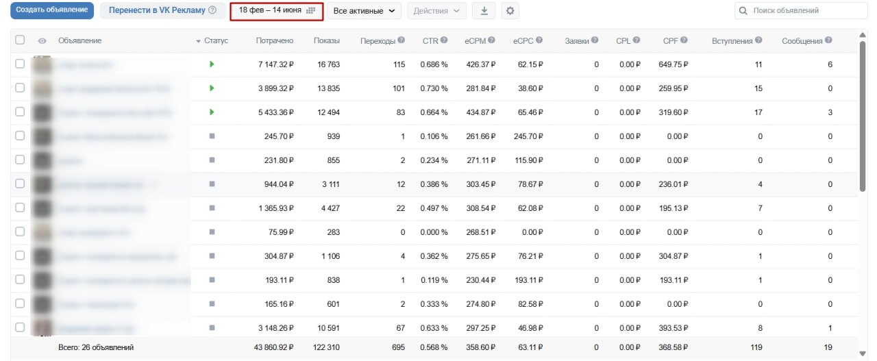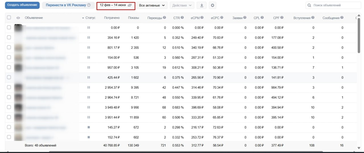 В целом проект идет стабильно, сильных спадов не наблюдается. Иногда цена показов повышается из-за узкой аудитории, иногда креативы выгорают, но это нормальные рабочие моменты.