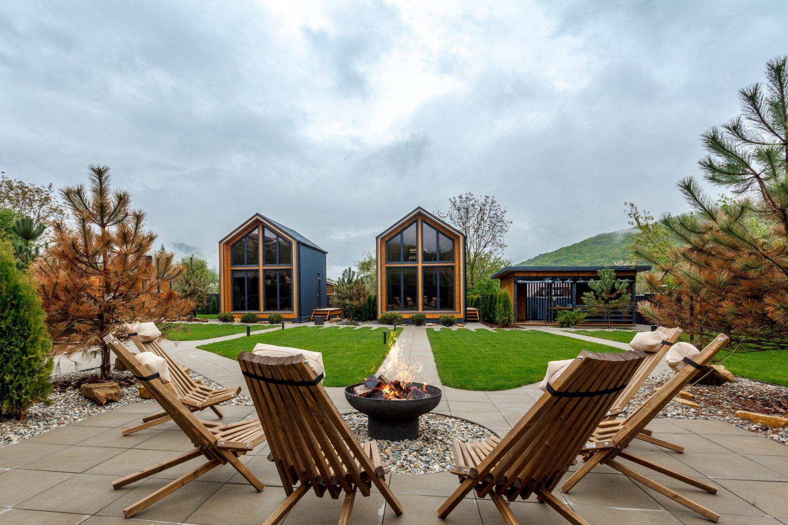 "8 сосен" - это баз отдыха в Адыгее, которая представляет собой закрытую территорию с несколькими барн-хаусов (Barn house - современный тип дома, который соединяет в себе минимализм, лофт и экостиль, напоминает переоборудованный амбар) разной вместимости. На территории гости могут найти: открытый бассейн, купель фурако (японская баня в виде бочки), костровая зона, подсветка, а так же могут воспользоваться рядом дополнительных услуг.