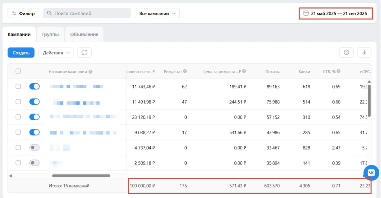 Тестирования проводились как в старом, так и в новом рекламном кабинете для оценки разных подходов и алгоритмов.*