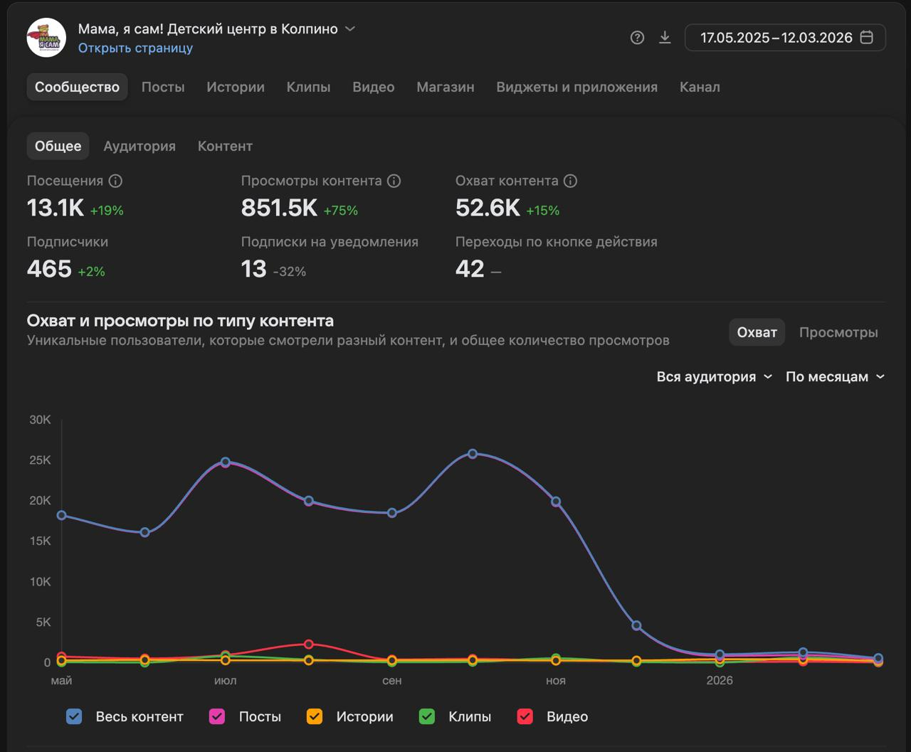 В марте 2025 года, когда мы начали сотрудничество, еще работал старый рекламный кабинет ВК, но уже работал и новый. Старый, по нашему опыту лучше позволял работать в локальных проектах и узкой ЦА, поэтому мы начали с него. В последних числах декабря 2025 года мы перешли на новый кабинет (старый закрыли). На момент написания кейса уже 2,5 месяца мы работаем в новом кабинете. Работать сложнее, но нам удается удерживать результаты.