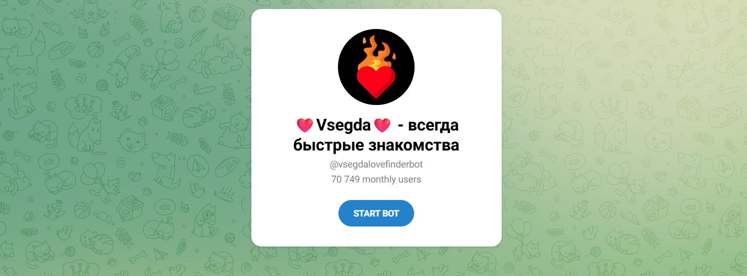 Бот выглядит солидно. Здесь меньше "приколов" и мемов, люди пишут осознанно. Если цель — найти жену или мужа, а не просто чат знакомств без обязательств, то вам сюда.