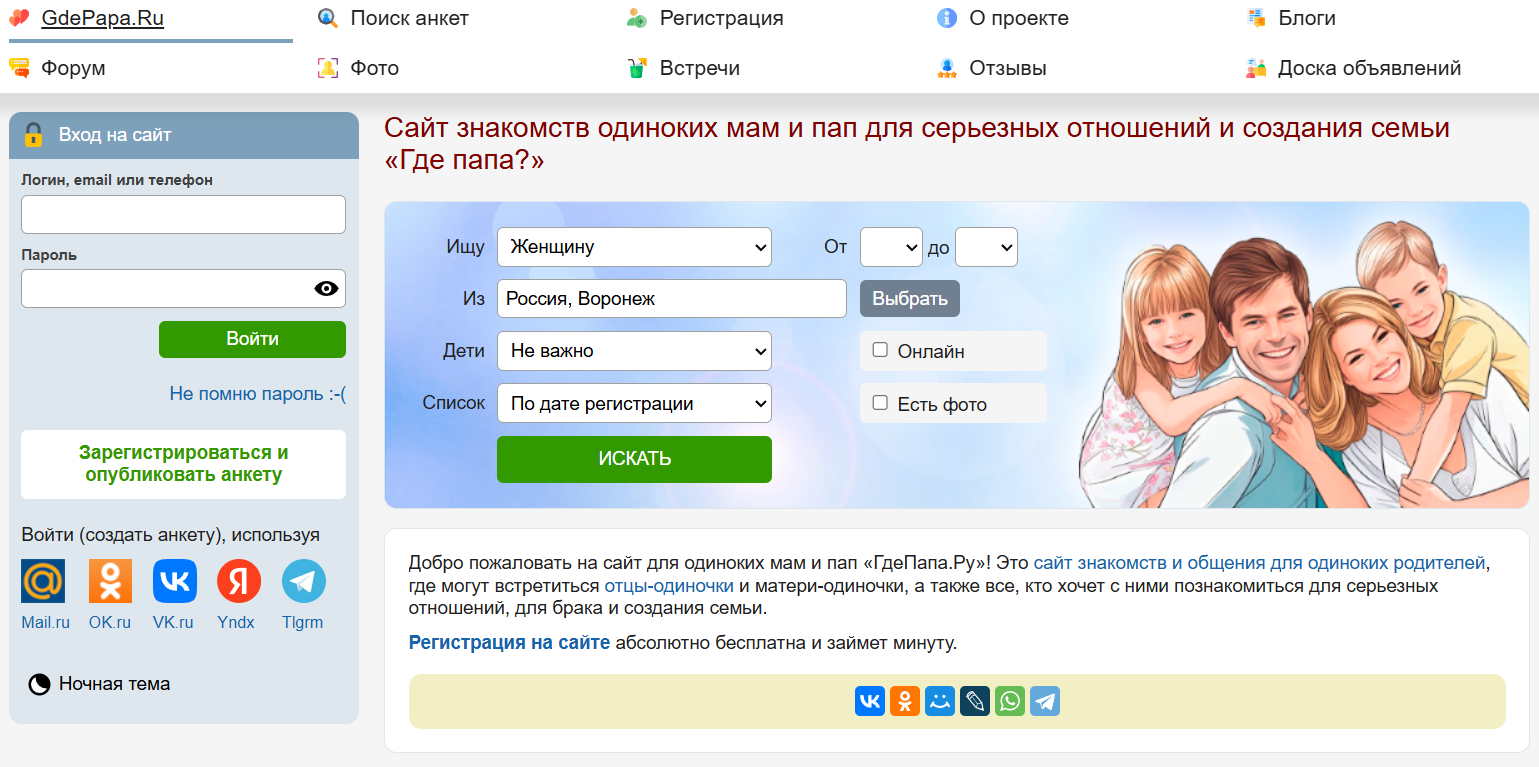 Этот ресурс больше напоминает клуб поддержки, плавно перетекающий в создание крепких семей. В отличие от других сайтов, наличие ребенка здесь — не препятствие, а скорее точка соприкосновения. Пользователи очень открытые, взрослые и ориентированные на серьезный результат. Дизайн сайта может показаться немного устаревшим, но это с лихвой окупается душевностью аудитории.
