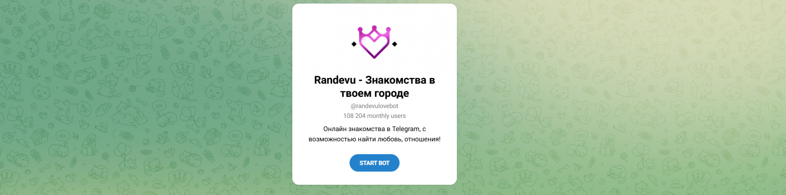 Самый масштабный бот в нашей подборке с впечатляющей аудиторией в 270 тысяч человек ежемесячно. Когда женщины ищут знакомства с мужчинами в своем городе без долгих поисков, они часто приходят именно сюда. Умный алгоритм подбирает пары не только по стандартным возрастным рамкам, но и учитывает ваши интересы и геопозицию. Анкетирование простое, но достаточно емкое, чтобы понять, кто находится по ту сторону экрана.