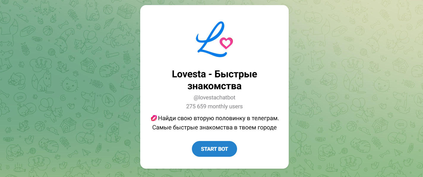 🎯 Lovesta — Умный виртуальный помощник с огромной базой, организующий прямые знакомства с номерами мужчин поблизости для спонтанных встреч.