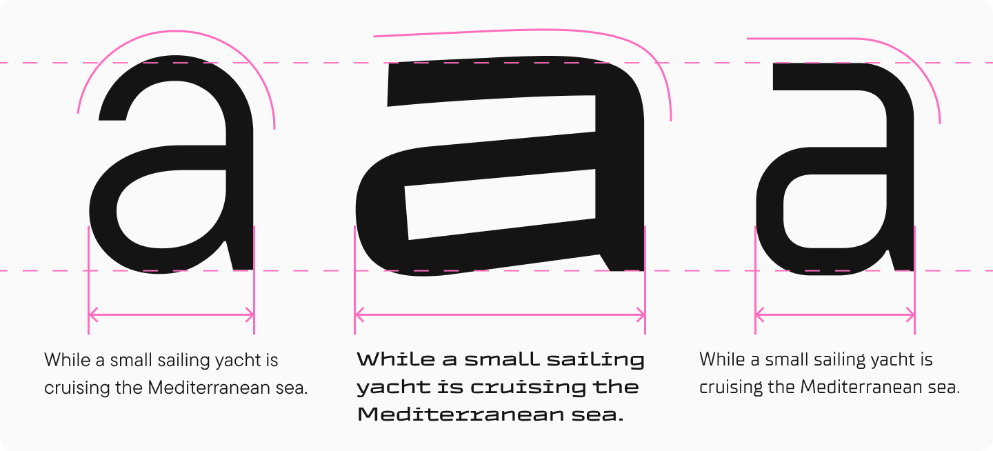 Вес — это толщина штрихов или жирность символов. Этот параметр влияет как на разборчивость отдельных символов, так и на общую читабельность.