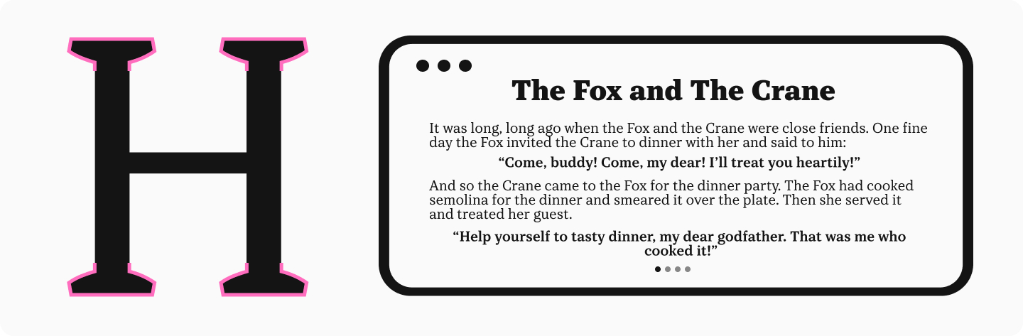 Узкие или широкие шрифты могут стать интересным дизайнерским решением, однако они хорошо подходят для акциденции, а не для использования в текстовом наборе. Зауженные или расширенные пропорции будут мешать и разборчивости, и удобочитаемости. Поэтому для повышения читабельности текста выбирайте шрифты со стандартными пропорциями.
