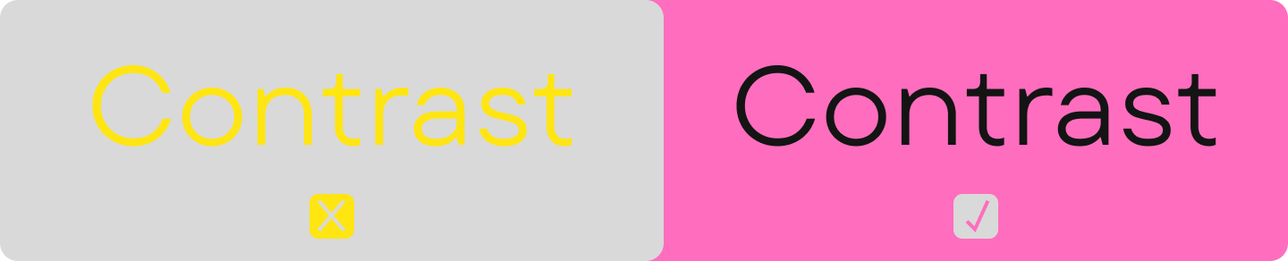 Текст должен быть контрастным по отношению к фону. Классика — черный шрифт на белом фоне, но можно использовать и другие цвета. Например, тёмно-серый или тёмно-зелёный — главное, сохранять контрастность и избегать ярких оттенков. Вы можете использовать этот сервис для проверки контрастов цветов в моделях RGB и HSL.