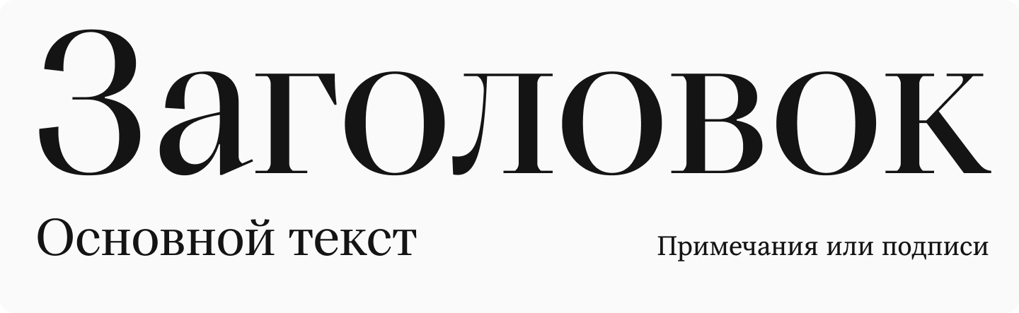 Текстовые шрифты, напротив, разрабатываются для набора длинных текстов. У них более сдержанный характер, лаконичный дизайн без лишних деталей и низкий контраст. Это способствует разборчивости знаков шрифта и читабельности всего текста.