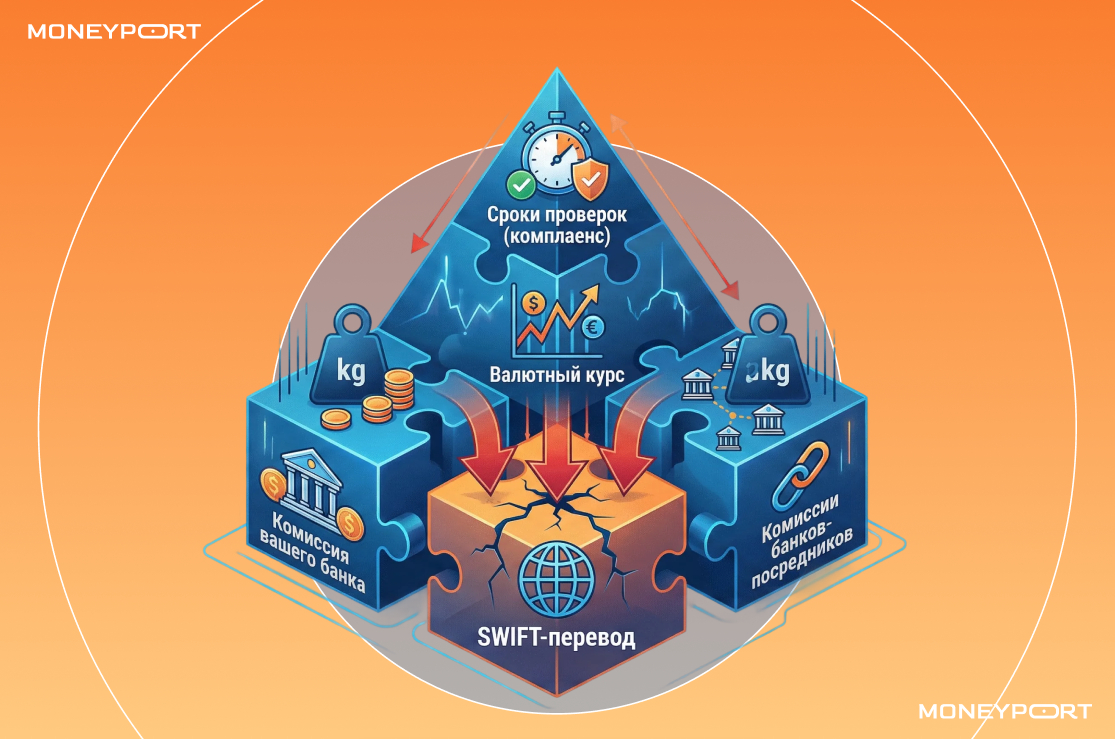 Ограничения сделали обычные SWIFT-переводы из-за рубежа сложными и непредсказуемыми. Американские и европейские банки усилили комплаенс, а переводы в Россию всё чаще проверяются вручную. Из-за этого сроки зачисления растягиваются и могут доходить до шести недель.