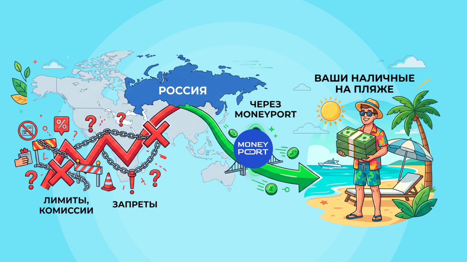 Наличные за границей остаются самым популярным платёжным инструментом россиян. И MoneyPort предлагает безопасную, легальную и быструю альтернативу банковским переводам, которые всё чаще работают нестабильно. Вы получаете деньги там, где они нужны, без лишних вопросов и ожиданий.