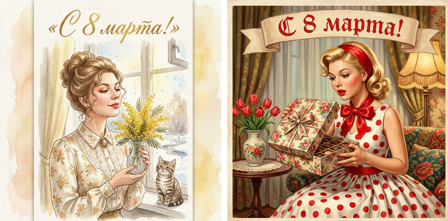 Если вы хотите сделать необычное поздравление, которое будет отличаться от стандартных шаблонов, попробуйте создать советскую открытку на 8 марта через ИИ — это быстро, доступно и действительно впечатляет.