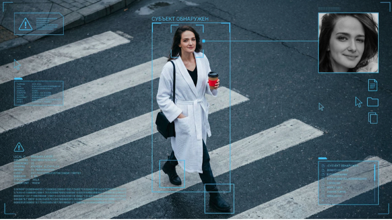Преобразуйте персонажа с прикреплённого изображения в ультрареалистичный 64K‑кадр с DSLR‑камеры в эстетике футуристического видеонаблюдения. Изобразите стильного персонажа, идущего по пешеходному переходу на асфальтовой дороге, снятого с высокой, слегка наклонённой CCTV‑точки. Атмосфера киберпанк‑стрит‑фото с цифровыми оверлеями (информационными блоками и надписями) системы наблюдения. Одна рука персонажа в кармане, другой он держит стакан кофе навынос с красным держателем. На плече — чёрная сумка. Уверенная, расслабленная походка. Оверлеи включают: ярко‑синие bounding‑box‑рамки компьютерного зрения вокруг лица, тела и обуви; рамку распознавания лица с подписью Субъект обнаружен; вставку увеличенного чёрно‑белого фрагмента лица, соединённого тонкой синей линией; элементы HUD, предупреждающие иконки, курсоры, файловые символы, строковые данные. Эстетика интерфейса слежения с цифровой HUD‑типографикой. Освещение — реалистичный дневной свет с приглушёнными городскими тонами; холодный серый асфальт; лёгкое зерно плёнки; небольшие артефакты сжатия. Высокий контраст, документальный реализм, киберпанк‑настроение наблюдения. Чёткий фокус, стиль журнальной уличной фотографии, рендер уровня Unreal Engine 5 + Octane. Темы наблюдения, идентификации и современной городской анонимности. Стиль: фотореализм, киберпанк, наблюдение. Камера: DSLR, CCTV‑ракурс сверху. Освещение: дневное, кинематографичный контраст. Качество: ультрадетализированное, резкий фокус. Цветокор: холодные, десатурированные городские оттенки.