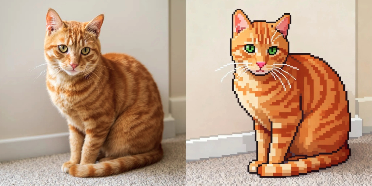 Преобразуйте в пиксель‑арт: ретростиль видеоигр 8-бит или 16-бит, отчётливо видимая пиксельная сетка, пониженное разрешение с «квадратной», блочной формой, упрощённая цветовая палитра, эстетика аркадных автоматов. Сохраните ключевые особенности объекта, несмотря на пикселизацию.