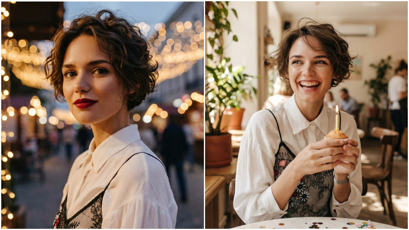 Сохрани черты лица человека на фото. Преобразуй изображение в lifestyle-фотосессию ко дню рождения: естественный свет, лёгкая небрежность в кадре, ощущение движения и жизни. Сохрани текстуру кожи, убери цифровые артефакты, сделай цветокоррекцию мягкой и натуральной. Фон подчисти, но оставь ощущение реального пространства. Негатив: глянец, сильная ретушь, искажения лица, лишние элементы, текст.
