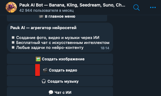 А если хочется упростить весь процесс и не разбираться в десятках сервисов, можно начать с более удобного формата — например, через Pauk AI, где уже доступны инструменты для генерации видео AI и создания роликов прямо в Telegram.