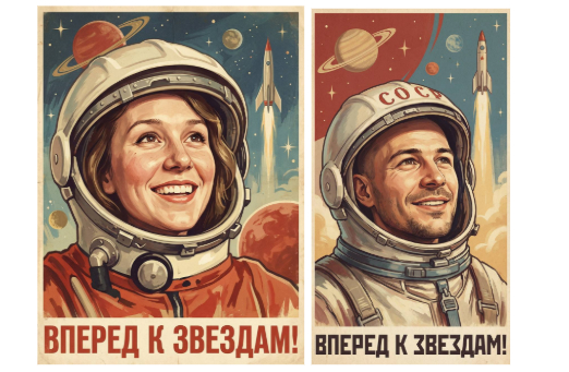 Лучше всего работают: советское ретро, фотореализм, детская сцена, sci-fi и минимализм. Они дают сильные ИИ открытки ко Дню космонавтики.