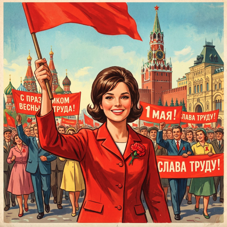 Если правильно собрать эти элементы в промте, нейросеть сможет создать не просто красивую картинку, а именно советскую открытку на Первомай: с ретро-настроением, узнаваемым стилем и личной деталью — например, вашим фото.