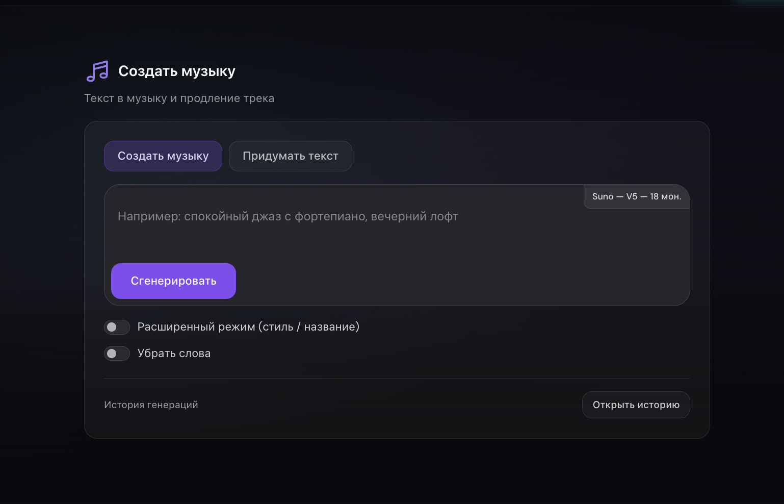 Сегодня ИИ для создания песен — это не фантастика, а реальный инструмент для творчества. Нейросеть создаёт песню по вашему тексту, пишет слова, вокал и музыку, превращая идею в звучание.