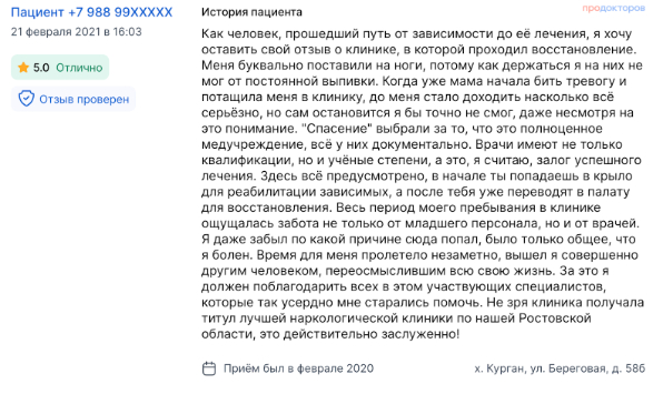 Во многих отзывах подчеркивается главное: «Спасение» — это именно медицинское учреждение, а не закрытый «реабилитационный дом».
