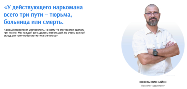 Психолог-аддиктолог Константин Сайко отмечает: зависимость — это не слабость характера, а хроническое заболевание. По его словам: «У действующего наркомана всего три пути — тюрьма, больница или смерть. Каждый перестанет употреблять, но кому-то это удастся сделать при жизни».