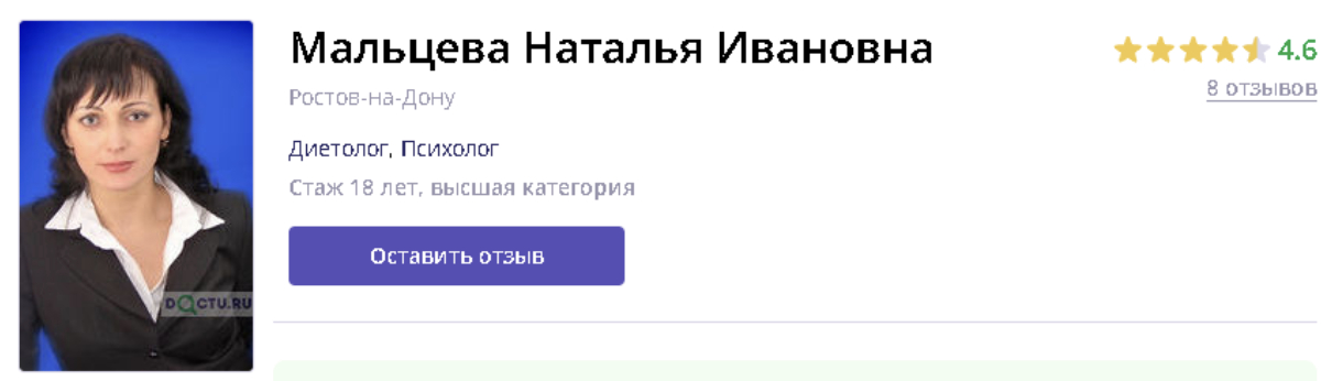 Например, Мальцева Наталья Ивановна — диетолог и психолог высшей категории со стажем 18 лет — помогает восстанавливать питание, сон и общий физический ресурс, который у зависимых часто серьезно подорван.