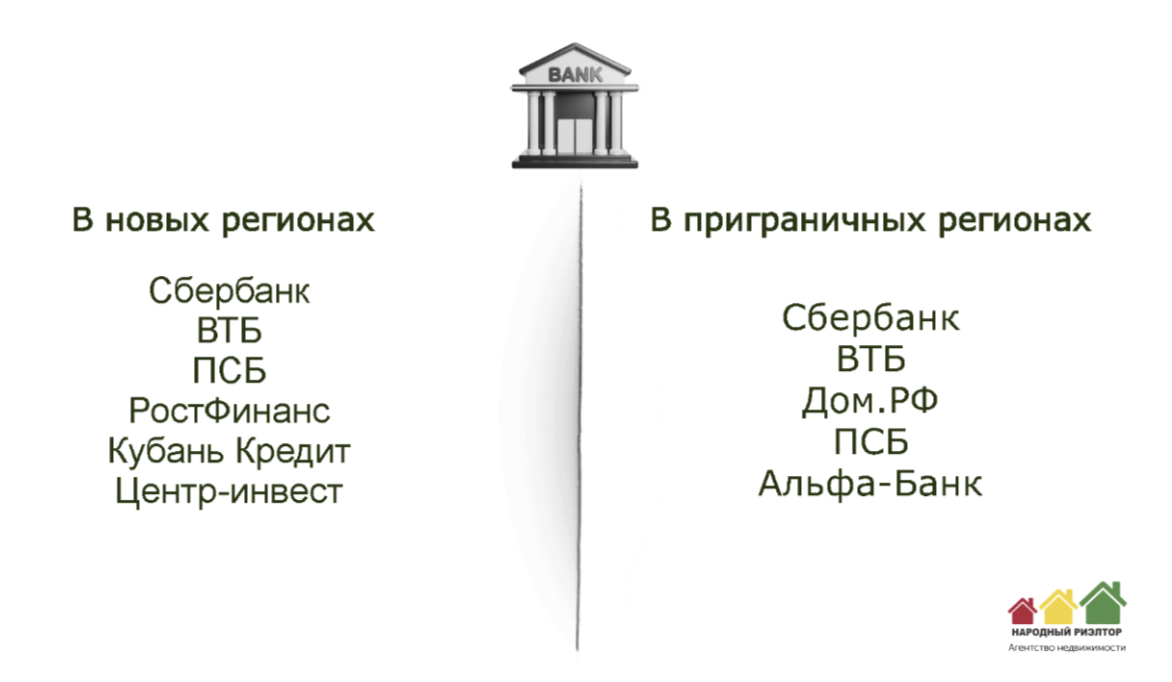 В новых регионах программу поддерживают: Сбербанк, ВТБ, ПСБ, РостФинанс, Кубань Кредит и Центр-инвест