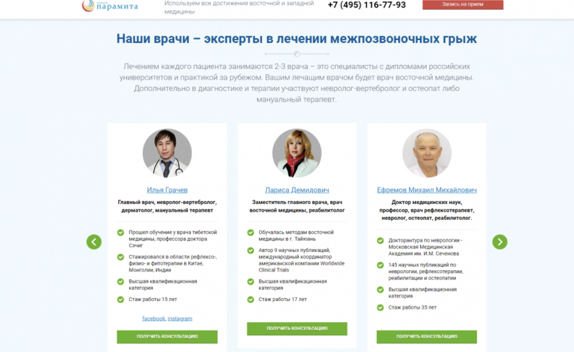 Для усиления E-E-A-T и роста продаж, в нашем кейсе с клиникой восточной медицины «Парамита», мы сместили фокус с продвижения клиники на врачей и конкретные заболевания.