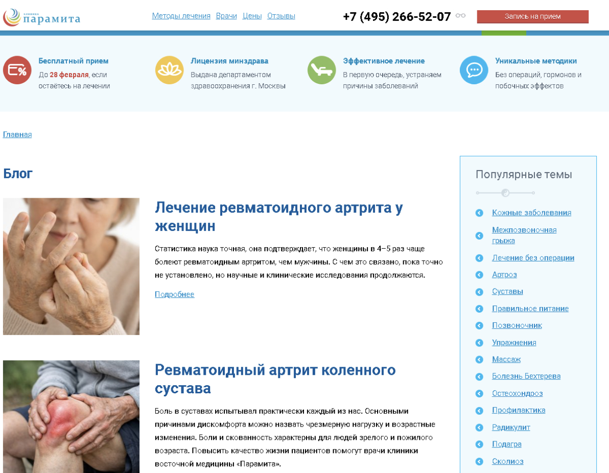 Мы проработали страницы специалистов, создали экспертный блог с подробными лонгридами, снимали возражения о восточной медицине и ее сочетании с западными достижениями.