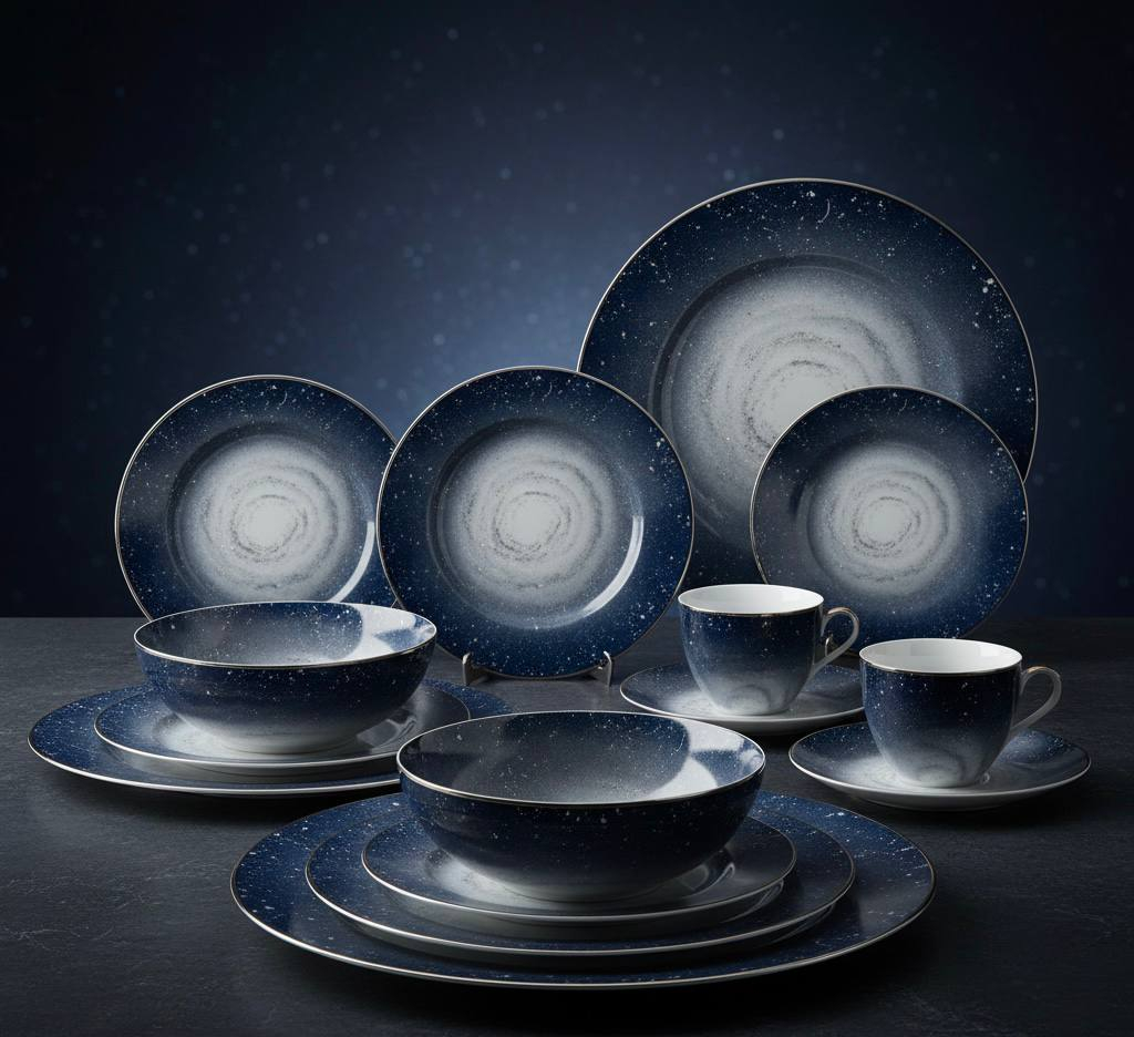 Комплексный подход к сервировке. Бренд предлагает полное решение для стола: фарфоровую посуду, приборы, стеклянную посуду, текстиль, аксессуары — всё в едином стиле и дизайне.