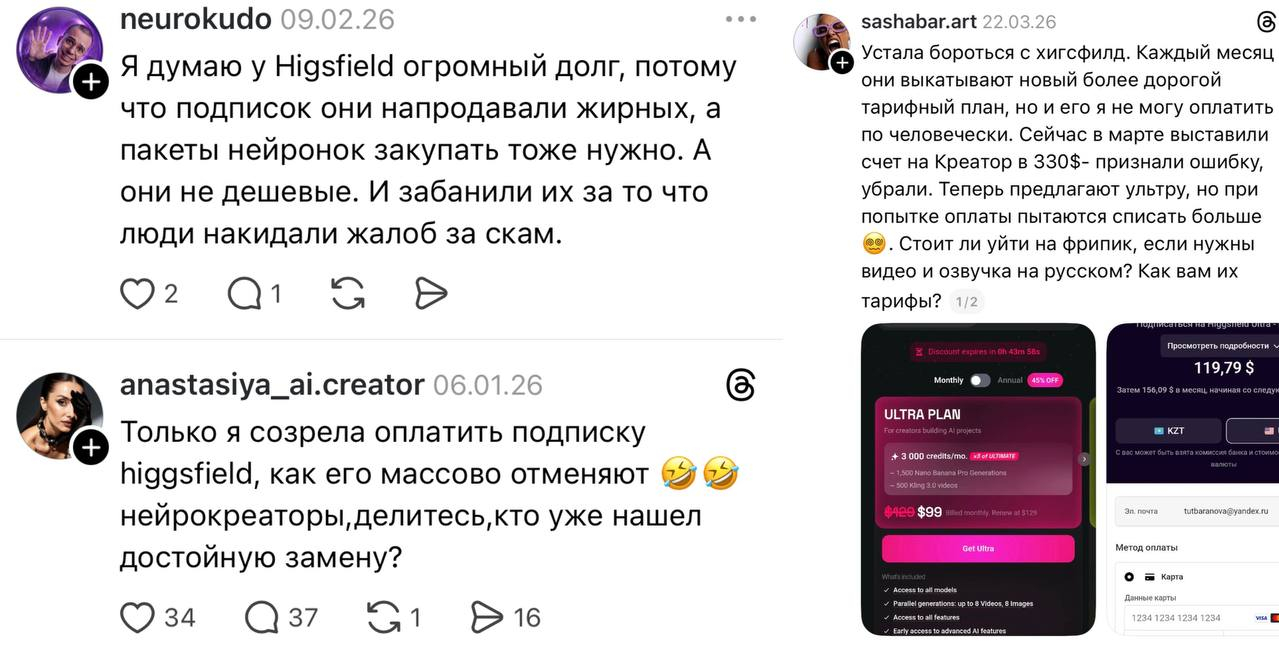 2. Следующая "предъява", о которой спорить невозможно - это скрытые условия и изменение тарифов Higgsfield. Сегодня ты покупаешь один тариф на безлимит к нейросетям, а завтра тебе говорят: "Слушай, то уже не безлимит. А вот в этом пакете он есть, докупай". Это как купить красивый торт, поставить в холодильник, а завтра достать оттуда пару засохших пряников.