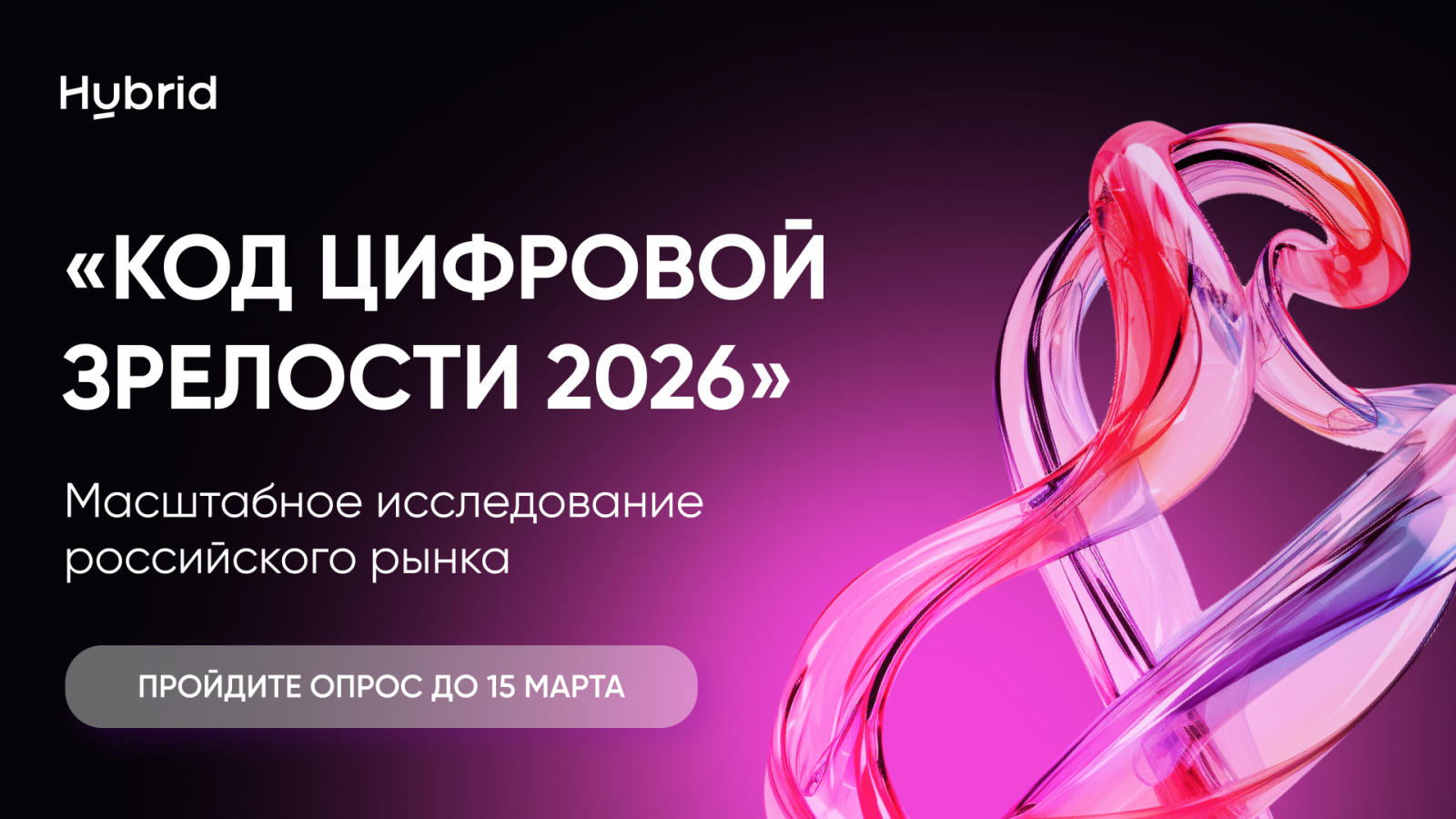 Hybrid проводит масштабное исследование российского рынка — «Код цифровой зрелости 2026». Нам важно собрать живую и честную картину индустрии, поэтому приглашаем вас пройти небольшой анонимный опрос. Его результаты помогут понять, как сегодня выглядит цифровизация бизнеса в России в разных отраслях и на разных этапах развития.