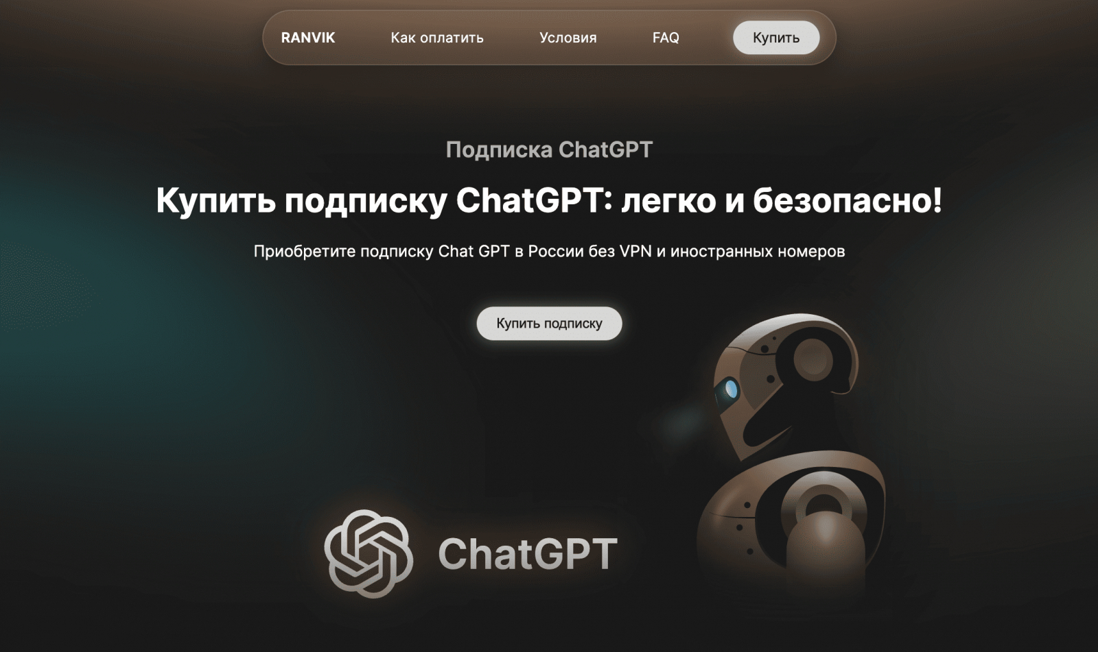 Поэтому через запросы вроде купить подписку chatgpt, как оплатить подписку chatgpt в россии и chatgpt подписка из россии люди ищут понятный и безопасный способ получить доступ без лишней бюрократии. В этом контексте купить подписку Чат ГПТ через Ranvik — это практичный вариант для тех, кому нужен рабочий инструмент в рублях, без иностранного номера. На странице сервиса прямо указано, что оформление доступно в России, а среди тарифов есть день, неделя, месяц и год.