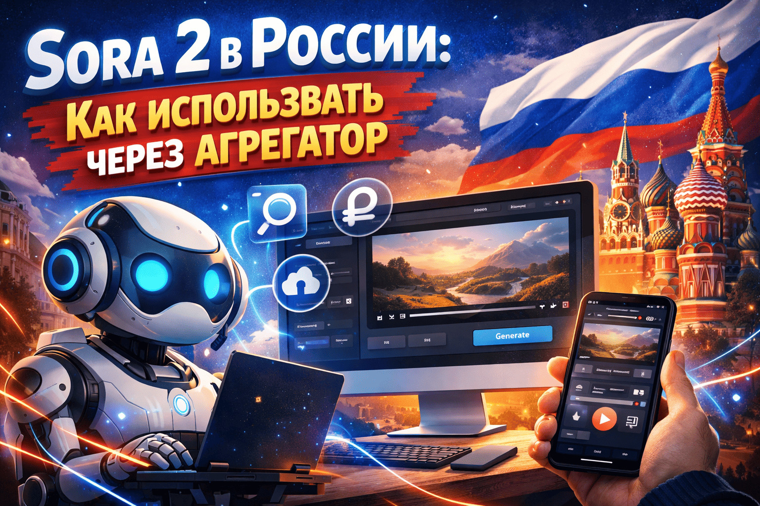 Sora 2 — одна из самых обсуждаемых нейросетей для генерации видео. Интерес к ней высок, потому что пользователь получает не просто короткий ролик по тексту, а более реалистичную сцену с движением, стилем, монтажной логикой и встроенным звуком. Но для аудитории из России главный вопрос не в том, «что умеет Sora 2», а в том, как получить к ней доступ без ограничений, зарубежной карты и сложной регистрации. Именно поэтому тема агрегаторов стала практическим сценарием входа в AI‑видео в 2026 году.