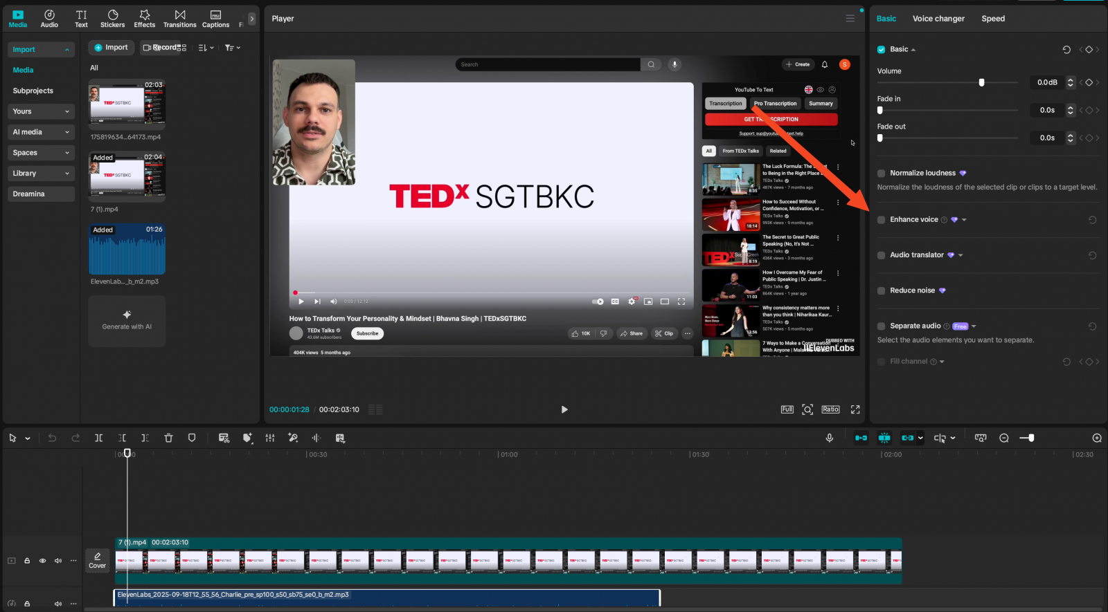 Это хороший инструмент для спасения проблемного аудио, но бесплатный тариф мал, хотелось бы доступ сразу обработать видео и иметь другие функции обработки звука.
