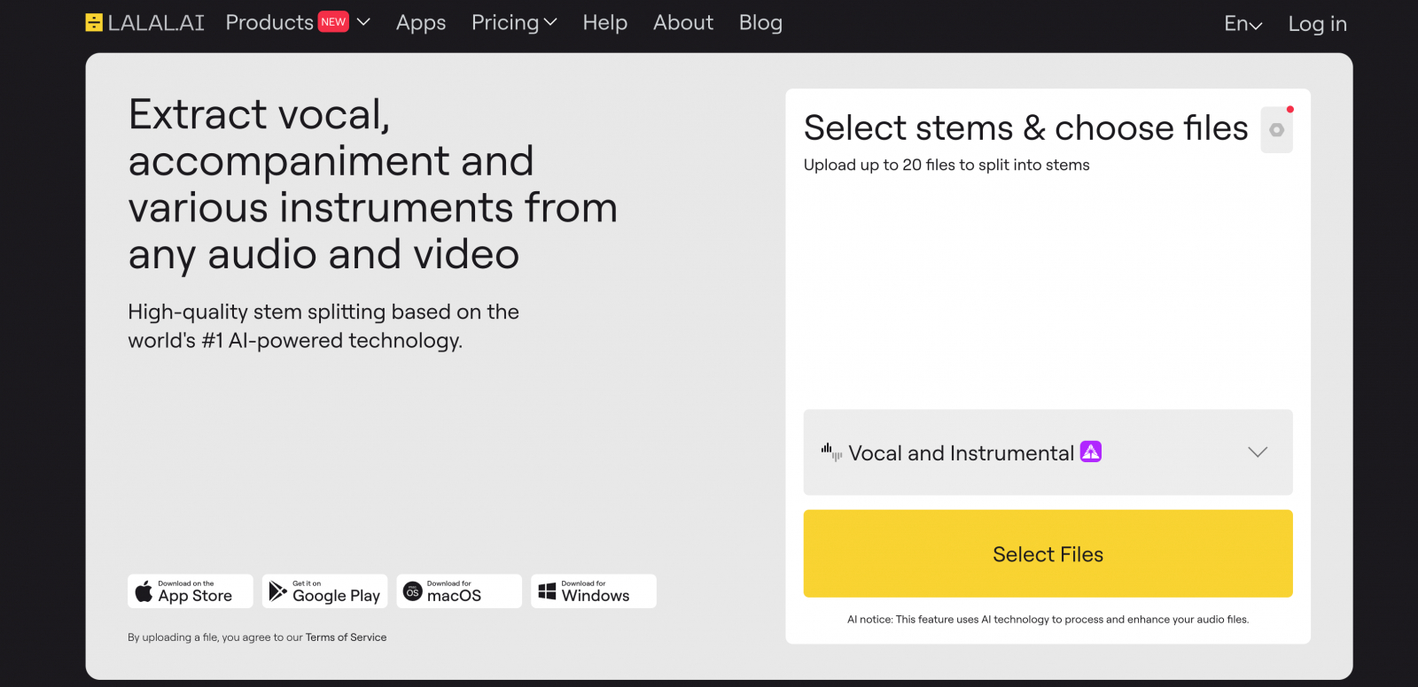 Очень прост в использовании, достаточно загрузить аудиофайл, выбрать режим обработки и получить результат. Интерфейс простой и понятный.