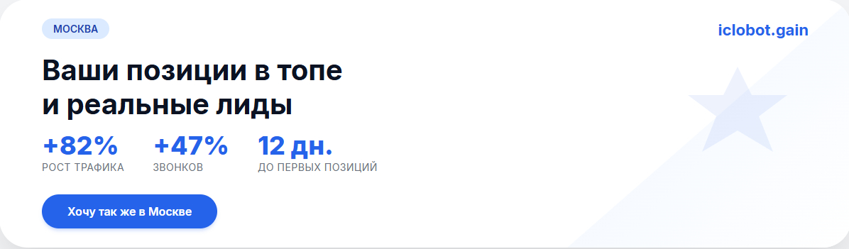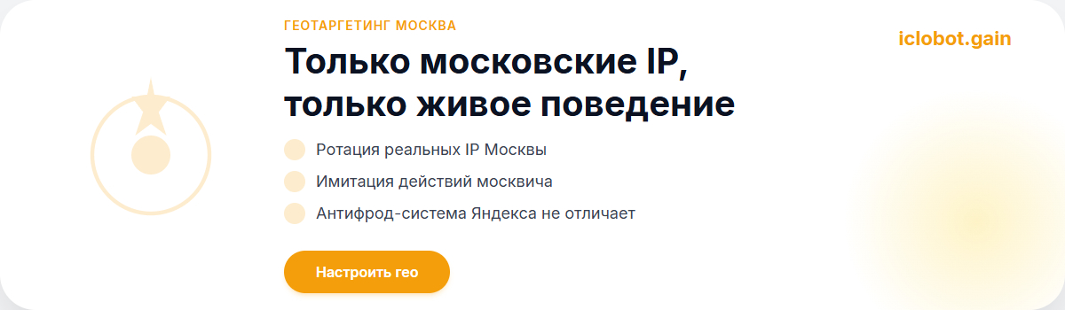 Мы в Iclobot занимаемся этим профессионально. Мы не обещаем чудес, мы даём рабочий инструмент и полную прозрачность. Если ваш бизнес в Москве нуждается в качественном трафике и реальных позициях в Яндексе, заходите в наш личный кабинет lk.iclobot.ru/gain.