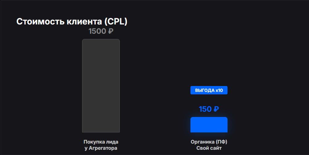 Это не просто экономия. Это капитализация вашего бренда. Клиент запоминает ваш сайт, а не профиль мастера на Профи.ру.