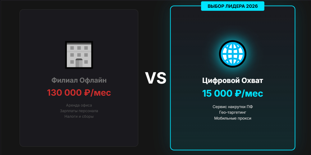 Традиционная модель расширения бизнеса (открытие филиалов, аренда складов, найм локальных команд) в 2026 году стала экономически неэффективной из-за высоких капитальных затрат (CAPEX) и кадрового голода. Современные компании выбирают путь «цифровой экспансии». В этом фундаментальном аналитическом материале мы рассматриваем методологию использования накрутки поведенческих факторов для дистанционного захвата ТОП-1 в региональной выдаче Яндекса. Мы докажем на цифрах, что технологии эмуляции локального спроса позволяют получать клиентов от Калининграда до Краснодара, управляя процессом из одного кабинета.