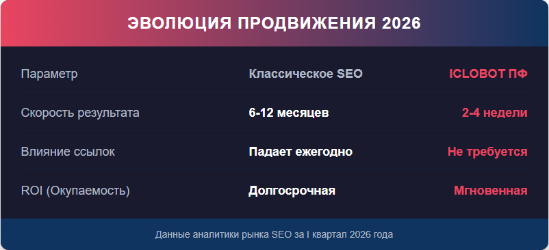 Давайте будем честны: органический рост — это прекрасно, но это слишком долго. В условиях дикой конкуренции 2026 года бизнес не может ждать год, пока сайт "отлежится" в песочнице. Ключевая проблема классики в том, что она пассивна. Вы делаете сайт и ждете.