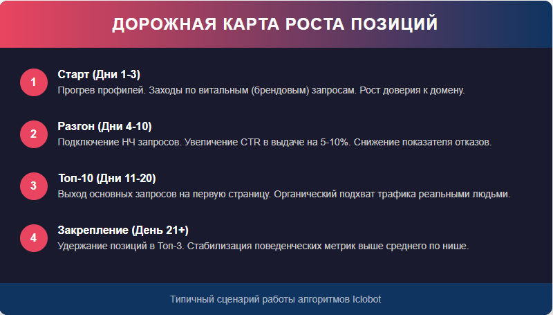 Нельзя просто включить "рубильник" на максимум. Грамотное продвижение - это стратегия. Вот как мы выстраиваем работу с iclobot.ru, чтобы захватить рынок:
