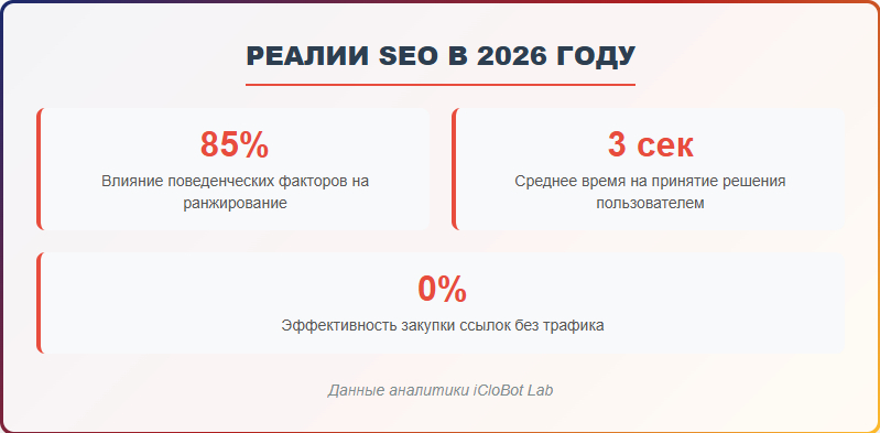 Давайте будем честны. Ссылочная масса, как фактор ранжирования, начала терять вес еще в начале 2020-х. К 2026 году ее влияние стало минимальным. Поисковые системы научились определять "продажность" ссылок с точностью 99,9%.