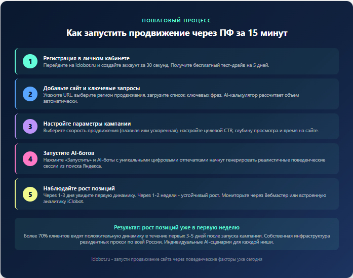 Начните с бесплатного тест-драйва на iClobot, оцените динамику за первую неделю - и вы поймете, почему продвижение сайта через поведенческие факторы стало главным трендом SEO в 2026 году.