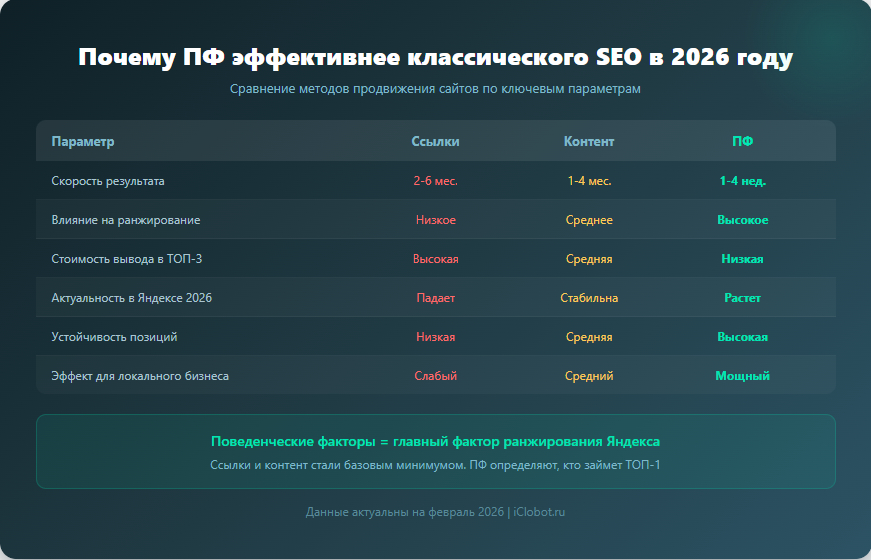 - Одно из главных преимуществ продвижения через поведенческие факторы - экономическая эффективность. Давайте сравним.